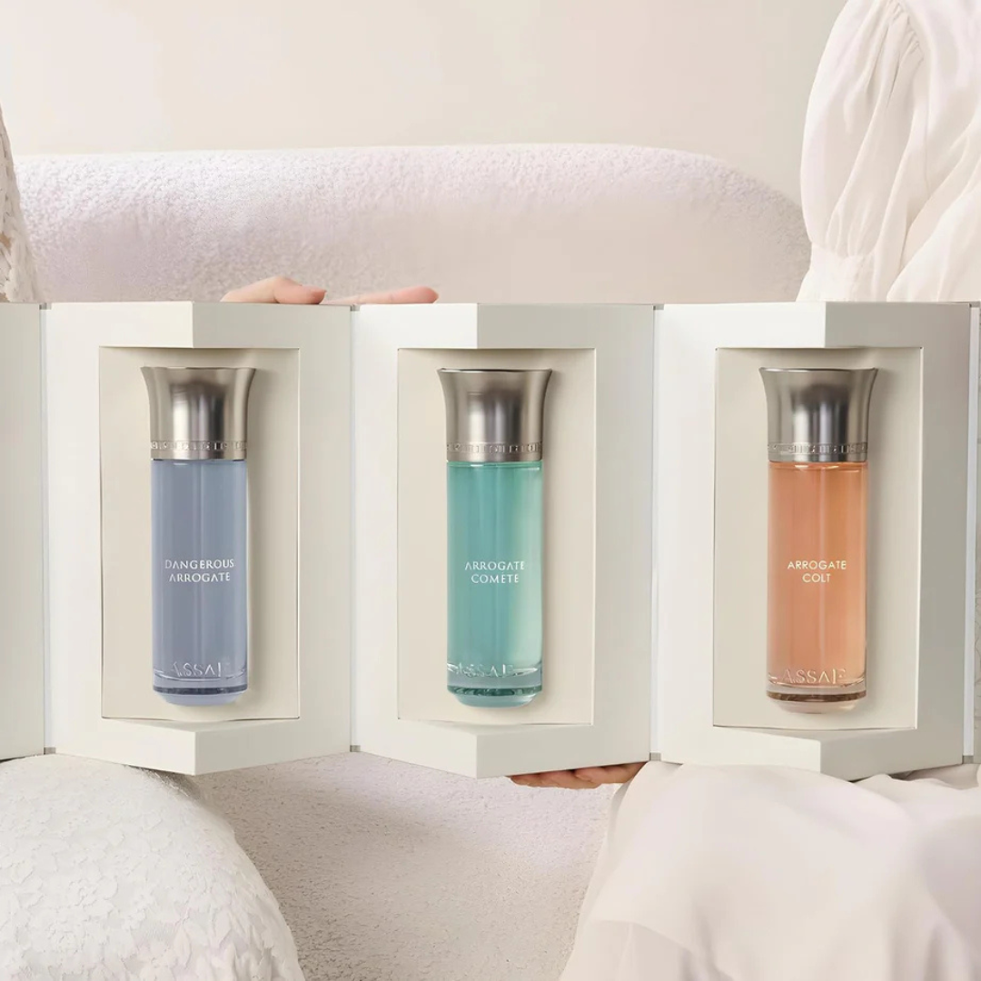 أطلقت عساف هذه المجموعة الخاصة المكونة من ثلاثة عطور أسطورية تجسد المجد والتفرد والشغف.
